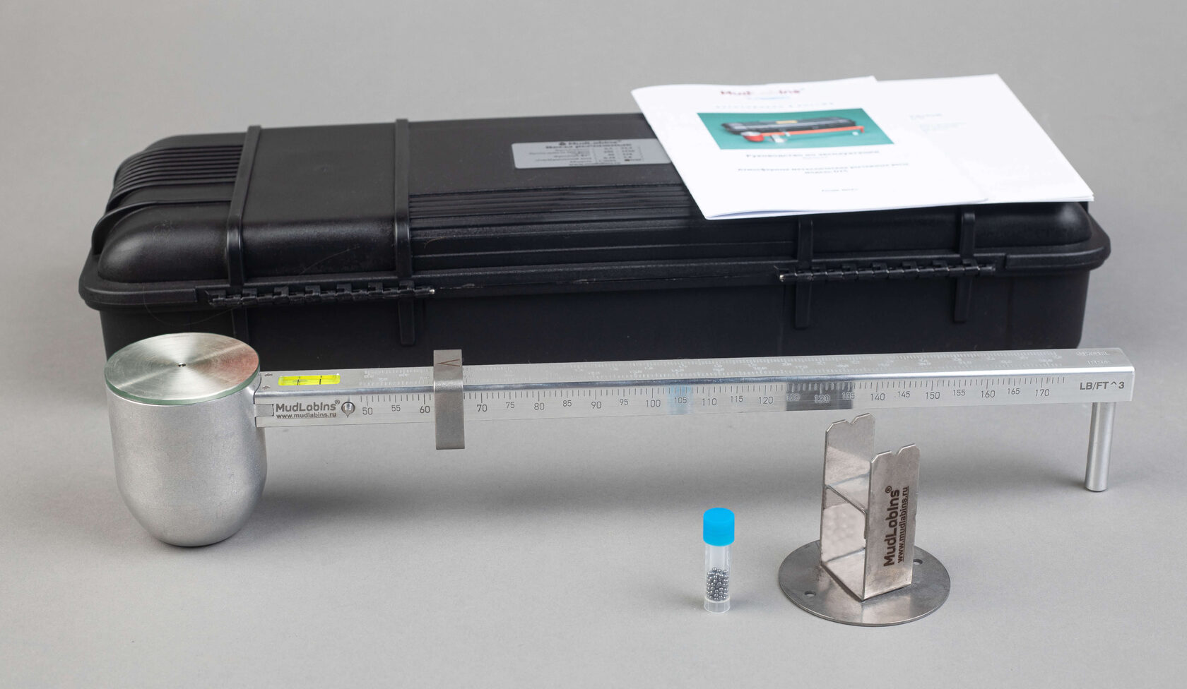 Рычажные весы модель D25 обеспечивают простой, практичный способ точного определения плотности бурового или цементного раствора. Атмосферные металлические рычажные весы модель D25 сконструированы таким образом, чтобы кружка со шламом на одном конце коромысла уравновешивалась зафиксированным противовесом на другом конце вместе с ползунком c подвижной гирей, который движется по шкале с делениями. Уровень с пузырьком установлен на коромысле для точности уравновешивания.